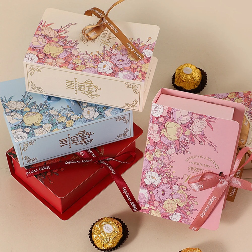 Exquisite Chocolate Gift Box Book Shape Gift Packing Box With Ribbon
